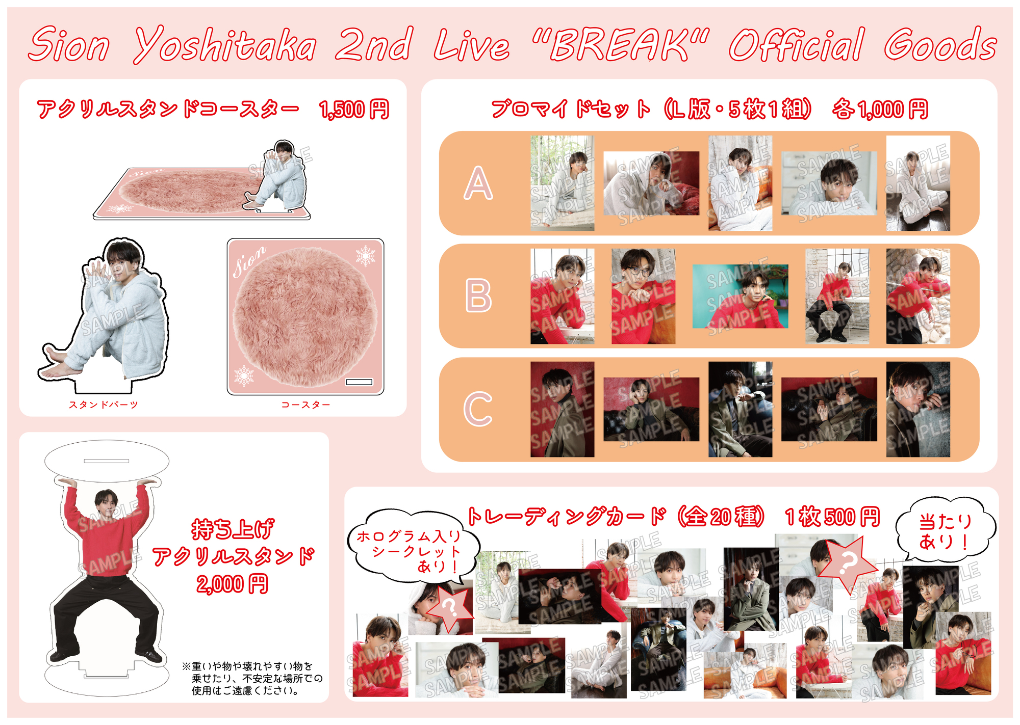 ※購入制限:アクリル商品・ブロマイド1会計につき2点、トレーディングカード10枚までの購入制限とさせていただきます。購入列に並び直して頂ければ、追加の購入可能です。